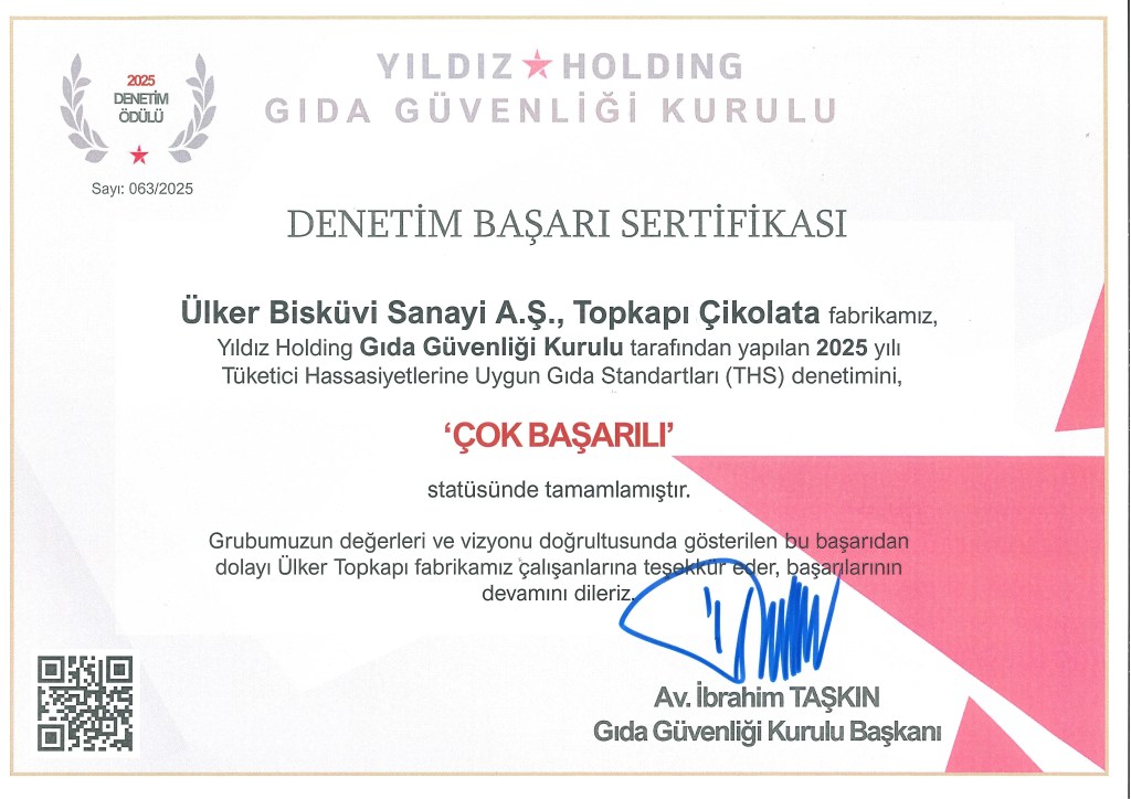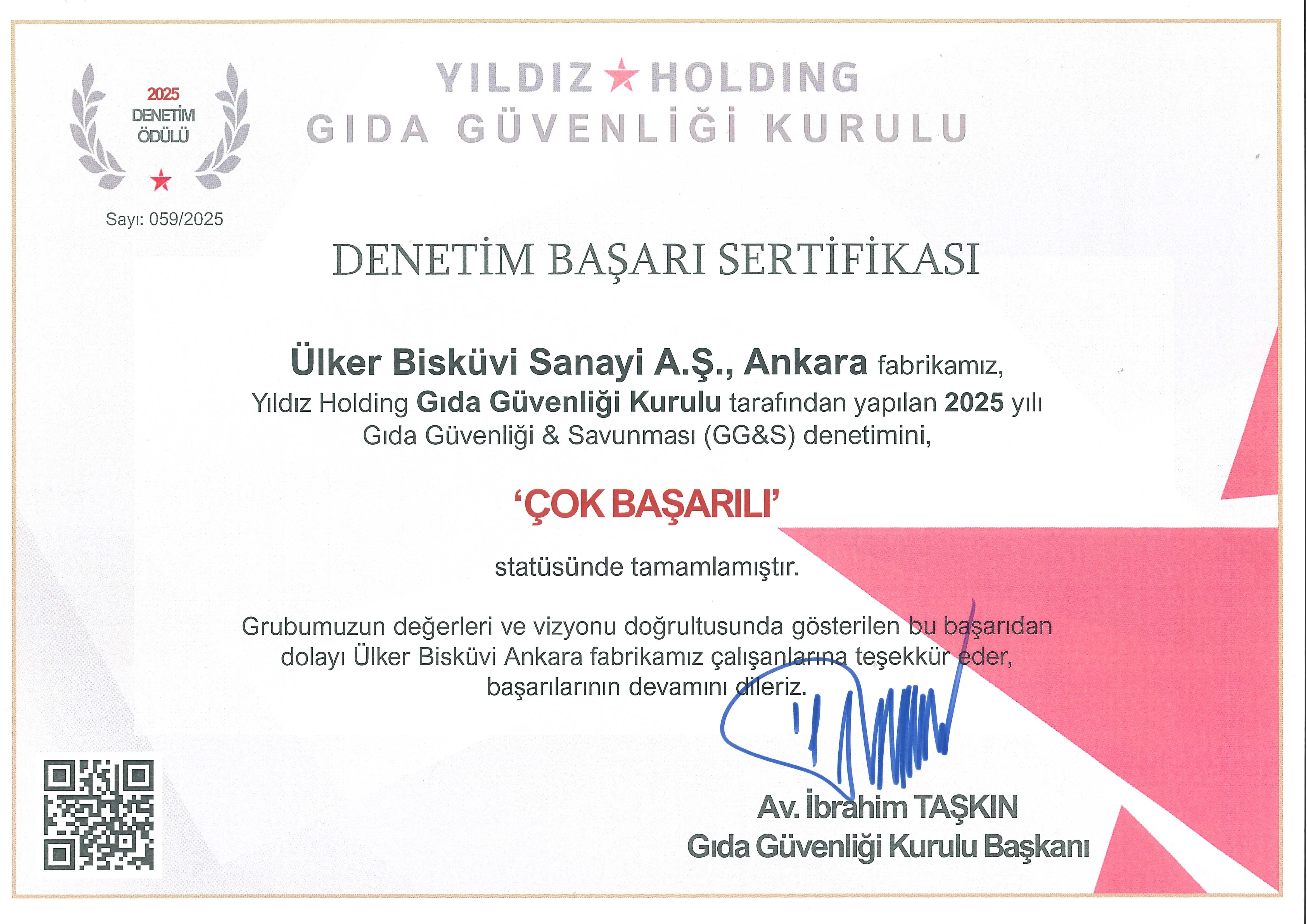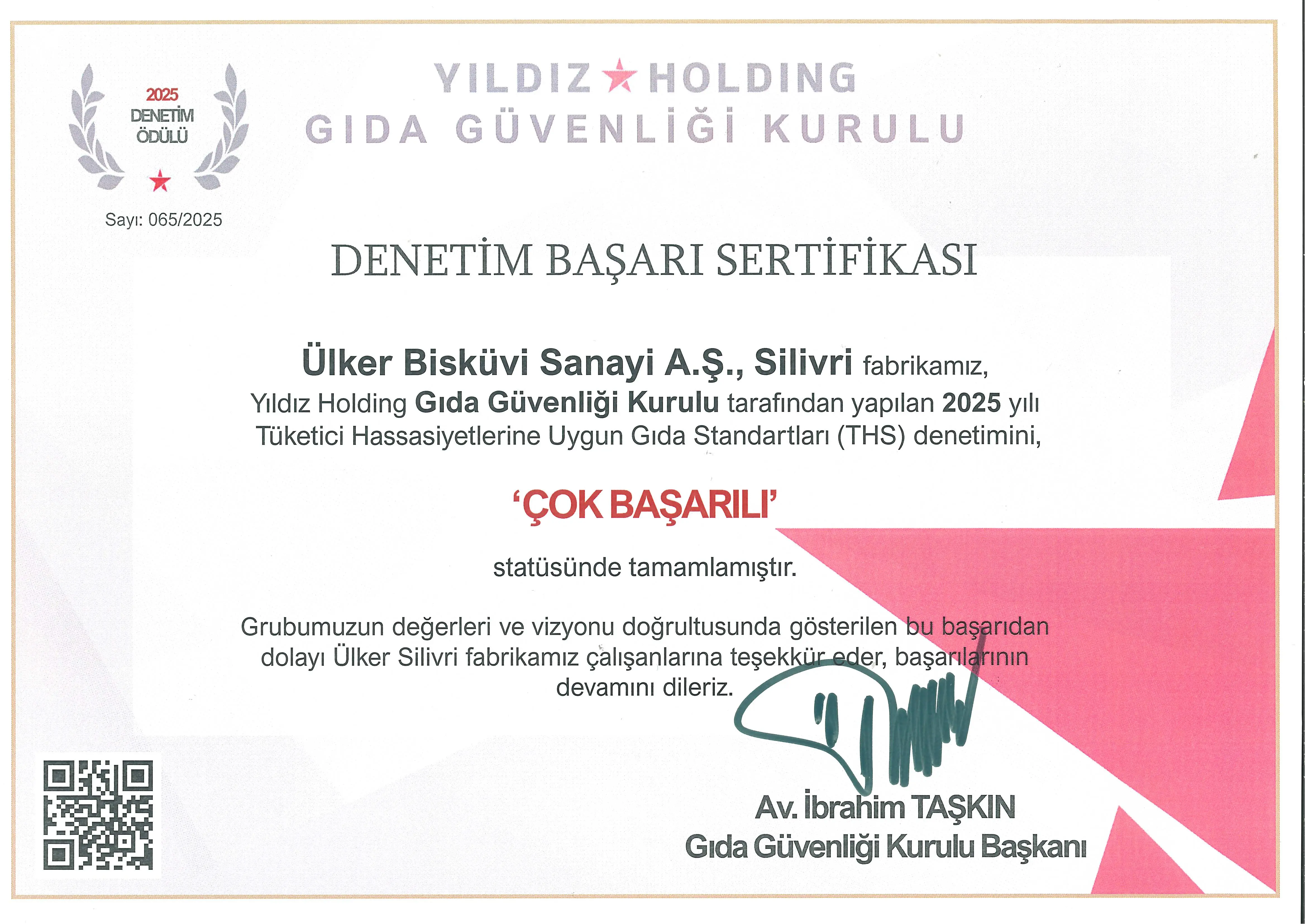 Yıldız Holding Food Safety Board carries out its audits in a manner that shall cover all our food factories globally within the scope of the Regulation prepared in compliance with the policies and strategies of the company and approved by the Chairman of the Board of Directors.